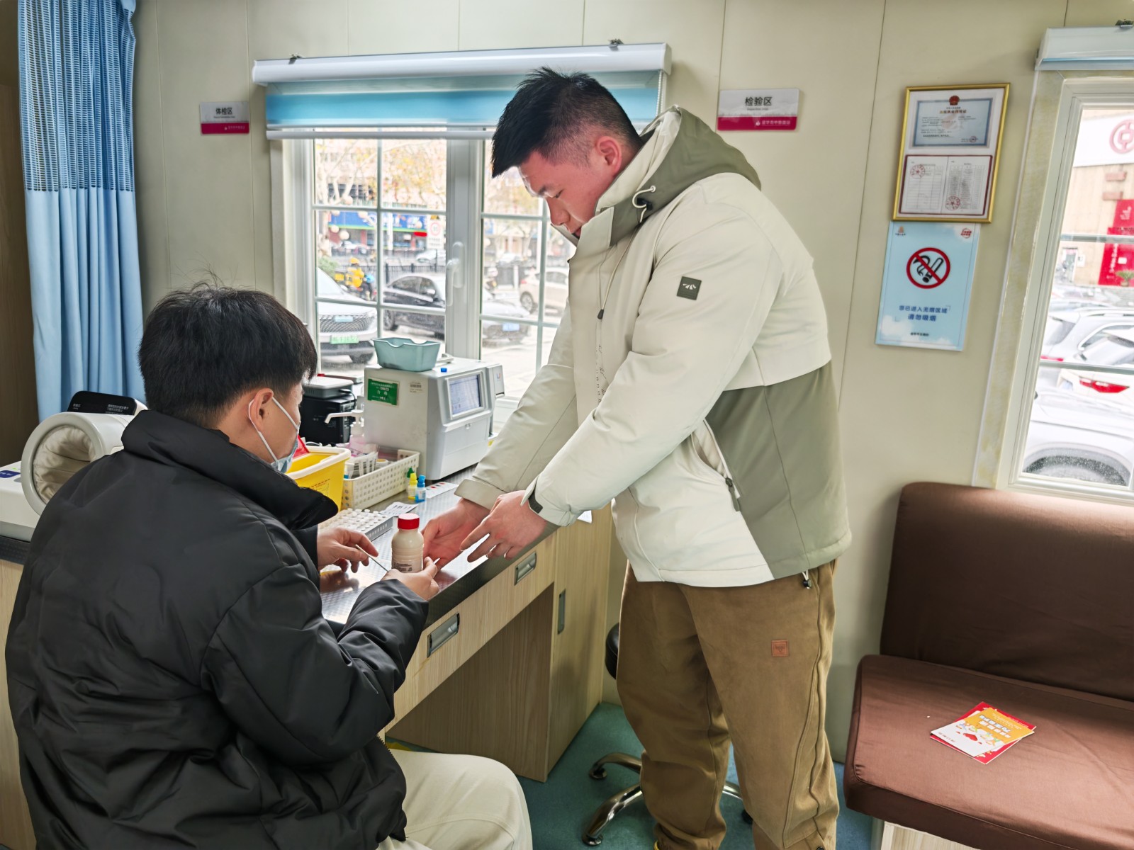 “獻完血后盡量不要劇烈運動,不要提重物,注意休息,多飲水,保持飲食清淡。”活動現(xiàn)場,志愿隊員們兵分兩路開展獻血志愿服務(wù)。一方面向周邊市民發(fā)放宣傳手冊,以現(xiàn)場咨詢、答疑解惑的方式向市民們普及獻血知識;另一方面嚴格按照采血工作要求,為前來獻血的愛心市民進行填表登記、測量血壓等程序,并詳細詢問獻血者近期身體狀況,為其講解獻血后的注意事項。