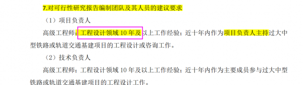 答: “工程設(shè)計領(lǐng)域10年及以上工作經(jīng)驗”可通過畢業(yè)時間結(jié)合工作內(nèi)容(或工作崗位或工作業(yè)績)來證明,同時近10年內(nèi)作為項目負責(zé)人主持過大中型鐵路或軌道交通基建項目的工程設(shè)計或咨詢工作。